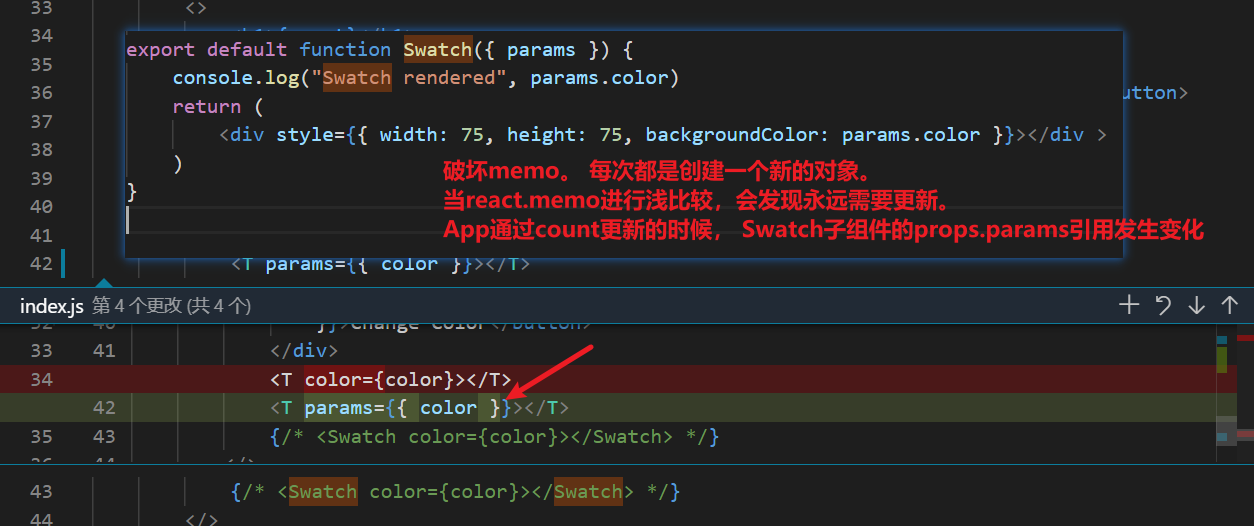 Swatch wrapped in memo:const T = React.memo(Swatch) return <T color={color}></T>复制成功